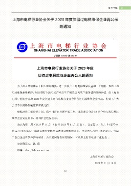 电梯行业协会提出 2023 年度创建上海市电梯行业协会信得过电梯维保企业活动,得到了广大