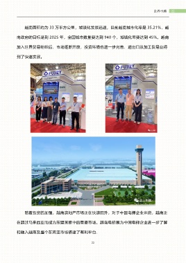 世界电梯 22 越南面积约为 33 万平方公里,城镇化发展迅速,目前越南城市化率是 35.21%,越 南政府的目标是到 2025 年,全国城市数量要达到 940 个,城镇化率要达到 45%。越南 加入世界贸易组织后,市场逐渐开放,投资环境也进一步完善,进出口及加工贸易业得 到了快速发展。 随着投资的加强,越南房地产市场正在快速回升,对于中国电梯企业来说,越南正 在超过马来西亚而成为东盟国家中的重要市场。越南电梯展为中国电梯企业进一步了解 和融入越南及整个东南亚市场搭建了有利平台. 22