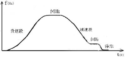 电梯的一次完整的运行过程,就是曳引电动机从起动、匀速运行到减速停车的过程。为使乘客拥有良好的舒适感,电梯采用S型速度曲线,转换成频率曲线如图5所示。