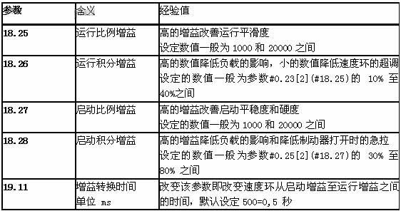 3.4.1.启动舒适感不好,一般表现为两种 :一种是提拉的感觉,即冲击 ;一种是顿的感觉,即倒溜。对于两种情况,大部分原因是由于驱动器的PI值调整不当造成的。现场调试可根据实际情况调整ES的启动比例增益 (Pr18.26)和积分增益 (Pr18.27) 尽可能大,一般为 2...3 倍运行增益。如果增大启动增益还是无法解决启动倒溜问题,可设定位置环比例增益参数 (Pr19.20)> 5...30和微分增益参数(Pr19.12)>10...30防止回溜。
