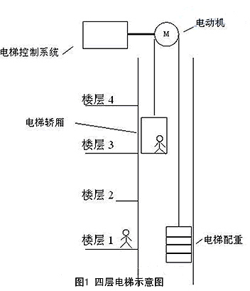 图1所示的是四层电梯示意图,从图中可以看到,电梯的轿厢与电梯配重连接在钢丝的两端,悬挂于电梯驱动电动机上。当电动机正向或者反向旋转时,轿厢会相应的上行或者下行,实现了电梯运送乘客或者货物的目的。位于电梯控制系统中的变频器是驱动电动机运行的装置。一般来讲,电梯平衡系数为45%左右,即轿厢内放置45%左右载重时,轿厢与电梯配重的重量相当。因此,当电梯轿厢重量小于电梯配重重量时,电梯上行势能转化为电能向电动机回馈能量,即发电运行;电梯下行时需要电动机拖动负载作功,电动机从电网中消耗电能,即电动运行;反之当电梯轿厢重量大于电梯配重重量时,则上行为电动运行,下行为发电运行。