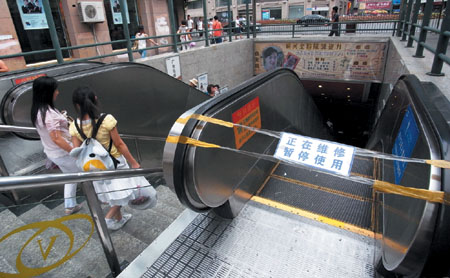 可是大型检修维护刚刚结束,自动扶梯就又出现故障甚至停运,很多也是行人使用不当造成的。“久光百货和中心裕景门前的两部扶梯都被人别断了台阶齿。”大连市市政管理处桥梁管理所杨所长谈到这个问题也显得很头疼。他说,自动扶梯的台阶齿只要断了一个,一运行就会导致阶梯板碎裂,维修非常麻烦。“我们也在抓紧抢修。”