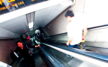 #p##e#E胜利广场各个入口自动扶梯全部正常运转