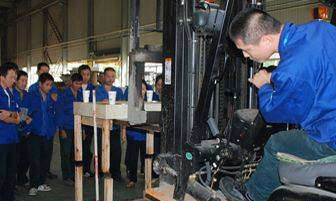 10月14日中午的发运中心喝彩连连。由工会和精益生产推进办公室主办的巨人通力电梯有限公司第一届技能大比武如火如荼地举行。来自发运中心、扶梯车间、电控车间、钣金车间、采购件仓库和机修模具车间的23位选手在此比拼叉车技能。