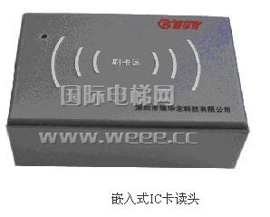 电梯读头:安装在电梯轿厢内的电梯操作面板上,读卡器通过射频信号同 IC 卡进行近距离通讯,并给 IC 卡上的芯片提供能量,系统通过读卡器对IC卡进行识别。