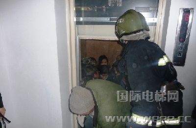 到达现场,小区物业的管理人员已经在楼下焦急地等待消防官兵的到来,据物业管理人员介绍:目前电梯被卡在6楼和5楼之间,不知道什么原因电梯在没停电的情况下突然停止运行,有十多人被困电梯在里面,由于小区楼房建成时间较短,部分住户还在装修阶段,所以电梯用木板进行了包装,空间狭小、通风不良,被困人员已经出现呼吸困难、眩晕等症状,物业人员试图用电梯钥匙将电梯门打开却没成功,只好向消防部队求援。