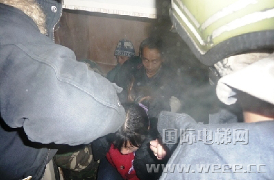 情况紧急,南关消防指战员立即展开救援,现场指挥员一面与被困群众对话,安抚情绪,一面指挥官兵用电梯钥匙和铁铤将电梯门撬开,并让两名战斗员用铁铤顶住电梯,防止电梯滑动,造成人员受伤。只用几分钟电梯门被成功打开,消防官兵将14名被困群众逐个从打开的电梯与楼板之间的开口处拉上6楼地面。