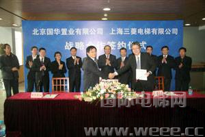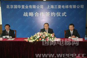 在建设北京新地标——华贸中心的过程中,上海三菱电梯凭借在产品品质、技术含量、可靠性以及售后服务等方面的优势,赢得国华置业的信任,成为华贸合作成功的代表品牌之一。战略合作协议意向书签署后,双方将本着互信、共赢的原则,为华贸今后的项目展开更紧密的合作。