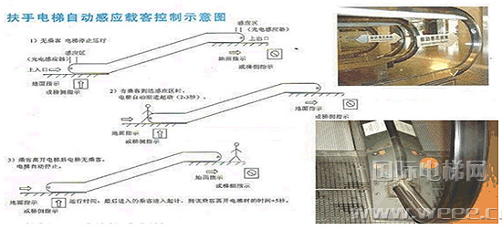 其中“自动感应载客”运行模式应用最为广泛,这种系统的工作模式是在自动扶梯出入口每一侧扶手带下方群板处,安装一对CONTRINEX高性能光电传感器通过利用他的漫反射功能(发射单元发出红外线,照射到乘客身上,反射回来,再由接收单元负责接收),就能在扶梯入口前方远距离(0-5米可调)探测到乘客。从而为扶梯提供准确的运行命令,达到有乘客是运行, 无乘客时切换至节能状态,如此可以很大程度降低空载的能耗,达到节能的目的。