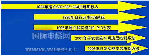 在1987年合资之初,上海三菱的生产规模设定为年产2000台。根据日本三菱电机的经验,这个数字是手工管理的极限产量。产量越大对管理的要求就越高,也就越容易产生生产过程管理的瓶颈。同时随着客户要求的交货周期越来越短、成本竞争越来越激烈,上海三菱面临着制造和管理过程中的种种挑战,他们逐步意识到,建立完整、科学的产品制造管理体系并逐步形成现代化设计开发环境是解决问题的关键,信息化是企业可持续发展的必然选择。