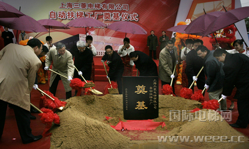 12月15日,全国最大的电梯制造企业———上海三菱电梯有限公司举行了新的自动扶梯工厂奠基仪式。新工厂位于闵行开发区内,占地面积5.3万平方米,设计产能为年产5000台各类自动扶梯和自动人行道,整个工程预计明年9月份竣工。届时,上海三菱的自动扶梯产销量有望跻身行业前三名。