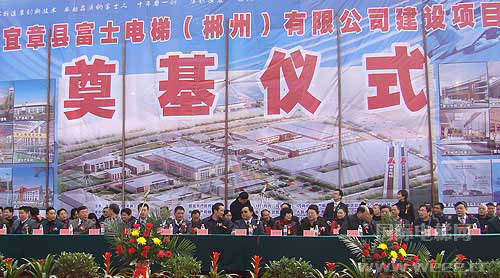 富士电梯(郴州)有限公司项目总占地320亩,分二期进行开发建设,第一期占地120亩,计划投资1.2亿元人民币,预计全面开工后,12个月内可开始进行电梯试生产和销售;投产后第1年生产电梯2500余台,年产值可达5亿元,3年内年产值可达10亿元。