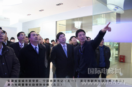 12月14日,安徽省宣城市委常委、宁国市委书记孙正东率党政代表团一行65人,在吴江市副市长汤卫明陪同下参观康力电梯。