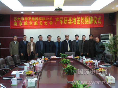 南京航空航天大学是江苏省的著名学校,在航空航天、军工技术研究、装备工艺设计、机电一体化、自动化控制等领域处国内领先地位。他们拥有众多的研发团队,以往多以服务军工产业为主。近年来,南航为服务社会,开始与省内知名企业合作,解决企业的技术攻关、新产品开发、人才培养等多方位课题,取的卓越成效,充分显示了南航的优势和产学研联合的强大生命力。苏州市申龙电梯有限公司是国内民族品牌电梯的佼佼者,近几年得到快速发展。公司注重新产品、新技术开发,目前用有19项发明专利,自主创新产品占销售产品80%以上,“室外重载型公共交通自动扶梯”是江苏省高新技术产品。随着电梯技术的日新月异,谁占领技术高地,谁就在市场上立于不败之地。申龙电梯对新产品开发、新技术储备已提到企业生存的战略高度。双方的合作,是时代的召唤,是中国制造向中国创造发展的必然结果。