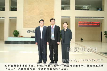 11月16日,山东省新泰市市委书记、市长刘学保率党政代表团一行50余人,在吴江市委常委、常务副市长吴炜陪同下参观康力电梯。