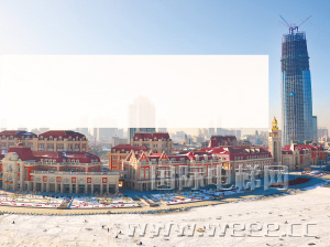 天津环球金融中心津塔写字楼(右)毗邻津湾广场。