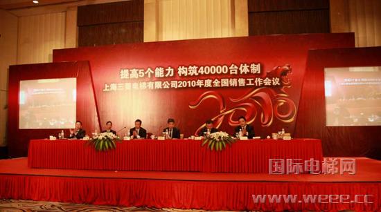 在2010年“后危机时代”营销工作刚刚启动的关键时刻,上海三菱于1月6日在浦东喜来登由由大酒店召开了2010年度全国销售工作会议。公司领导、营业本部、工程本部各级干部、各分公司领导及全国300余家代理单位、协作安装单位,共450余人参加了本次盛会——这是公司合资以来召开的最大规模的全国销售工作会议。