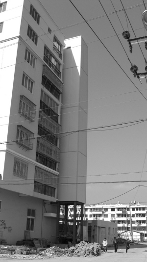而住在该住宅楼附近的蔡先生称,该住宅楼东面就是一所小学,两者仅一路之隔,平时有许多小学生在住宅楼附近玩耍,电梯一旦在外墙安置运行,他担心会对学生和过往行人造成一定威胁。