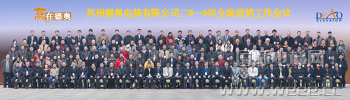 俗话讲“上有天堂,下有苏杭”,苏州德奥电梯有限公司就坐落在美丽的苏杭之间——吴江经济开发区,处在长三角江、浙、沪三省市的中心地带,西濒太湖,北连“苏无常”,东邻上海,南接杭州,交通便利,环境优美。2010年1月18日,苏州德奥电梯有限公司2010年全球营销工作年会在在吴江海悦大酒店成功举办。大会总结了2009年所取得的成果,并规划了2010年的战略目标,雄伟的目标展示了苏州德奥电梯有限公司的雄心壮志。