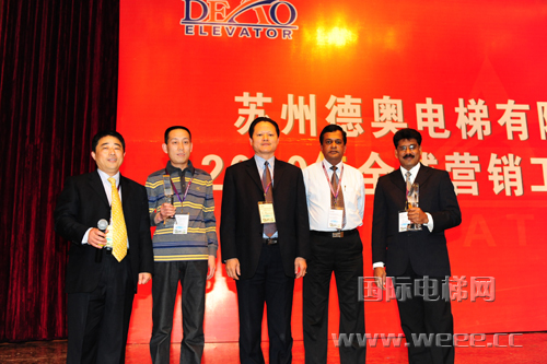 苏州德奥电梯董事长朱鑫民的致辞中,对三年来一直关心和支持苏州德奥的各界人士表示衷心的感谢,并对与会各位领导表示热烈的欢迎。朱鑫民董事长表示,苏州德奥电梯是一个新兴的高新技术型企业,从2006年落户吴江经济开发区之初,就坚持自主创新,致力于环保电梯的研发和推广,仅短短三年多时间,创造了如此优异的成绩与大家的支持密不可分。苏州德奥电梯采用颠覆式电梯制造和营销模式,矢志满足顾客所有的个性要求,对电梯运行状况实施自我诊断、远程实时监控、定期维护保养等一系列技术手段,确保用户无后顾之忧。虽然2009年电梯行业受到金融危机的冲击,但是在全体苏州德奥人的共同努力下,凭借过硬的产品质量,在竞争激烈的市场中脱颖而出,不仅在国内市场稳稳的站定了脚步,还在国际市场中打了多场漂亮的胜仗,在俄罗斯、东南亚、中东等多个国家和地区都取得优异的成绩。接着,朱鑫民董事长又宣布了更加喜人的消息,2010年第一季度,苏州德奥已有数个上百台的电梯项目将要签订,这必将是苏州德奥电梯又一个漂亮的起步。最后他表示,在2010年苏州德奥将继续本着平等互利、互惠互赢的原则,一如既往的做好市场营销工作,同时不断的改革创新,提高苏州德奥品牌效应,让苏州德奥成为广大代理商可以信赖的朋友,重要的合作伙伴。