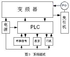 由图3可知,该系统主要由以下几部分组成:PLC、变频器、曳引机、门机等。PLC是控制系统的核心。[2]PLC根据输入的呼梯信号和目前电梯所处的位置自动确定电梯的运行方向及速度,变频器根据PLC的速度指令控制曳引电动机的转速,到达目的层后,自动平层、停车、开关门,在运行过程中输出电梯的楼层位置和运行方向,同时完成对呼梯信号的登记、保存和消除等工作。对电梯运行中的一些特殊情况(如急停、超载、冲顶、蹲底等)自动进行处理和报警。