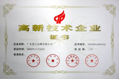 根据《高新技术企业认定管理办法》(国科发火〔2008〕172号)和《高新技术企业认定管理工作指引》(国科发火〔2008〕362号)有关规定,经广东省科技厅、省财政厅、省高新技术企业认定管理工作领导小组等多个机构及专家的重重严格审核,并得到国家高新技术企业认定管理工作领导小组的备案批复,广东菱王电梯有限公司于2009年11月顺利通过了广东省高新技术企业的认证,并在近日正式拿到了高新技术企业证书,成为了2009年第一批获此殊荣的企业。
