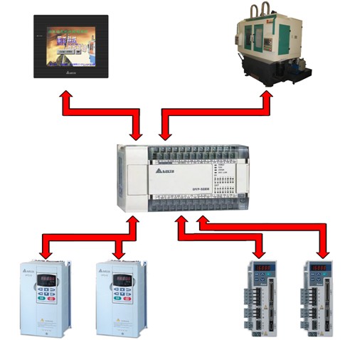 现在很多的微型机,或小型机都有内置高速脉冲输出功能。可以运用脉冲定位指令实现相对定位、绝对定位。台达PLC的相对定位指令[D]DRVI或绝对定位指令[D]DRVA。(指令前缀D为双字控制指令,最高定位区间可以达到232,即定位范围为-2147483648~+2147483647)。在机床控制中,当电气精度做到0.001mm时,则机床的定位范围在-2147483.648mm~+214748.367mm之间,完全可以满足机床的控制要求。