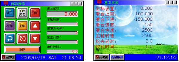 2, 机床人机对话采用控制面板的开关按钮与触摸屏接合。工件的加工速度,加工尺寸在触摸屏上利用参数的形式进行设置。