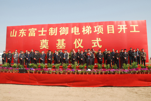 2010年4月2日上午,山东富士制御电梯有限公司新建厂区开工奠基仪式在德州宁津县经济开发区产业园隆重举行。省市领导和县领导以及富士电梯等代表出席了此次奠基仪式。仪式上,县委书记孙起生、县长景文新宣布项目奠基开工并讲话,市组织部部长袁希君,市中小企业局局长于喆,市工商局局长段雪珺,市招商办主任王学昌等省市领导发表了重要讲话,山东富士制御电梯有限公司董事长刘立新先生以及公司代表对新项目也作了详尽介绍。礼花漫天,礼炮齐鸣,在喜庆的音乐声中,领导们共同举锹为奠基石培土。这标志着山东富士制御电梯有限公司向前迈出了一大步,发展前景美好辉煌。