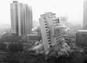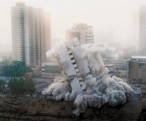5月31日报道 “5、4、3、2、1,起爆!”昨日5时30分,一声巨响划破天空,位于中山路与栗康街口的原市财政服务培训中心60米高的13层大楼,瞬间坍塌,化成一堆瓦砾。据悉,此次定向爆破采用定向北倒空中解体的方式,是迄今为止石市最大的楼宇爆破工程。至此,河北省及石市双重点项目 “勒泰中心”项目拉开全面建设的序幕。