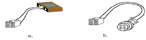 (C).将专用电缆线的2个插头边沿突起或槽口朝上,见图(4.b),左、右2个插头中1-1、2-2、3-3、4-4应为导通,即相同编号位置为导通,其它位置间不导通。