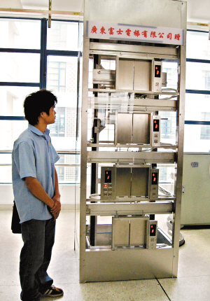 据了解,这是一家电梯有限公司专门为顺德职院机电系学生量身定做的教学用电梯模型。电梯技术人员介绍,这台“电梯”富含各种科技技术,有很好的科研价值。