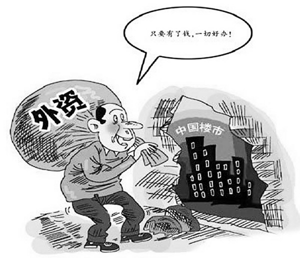 一位人士指出,外资对于国内房地产行业的大举进入,使得国内产业结构及发展模式扭曲的态势进一步恶化,同时也会造成国内居民财富分配越来越不公,一些外资存在着投机成分,对于国内房地产价格的推高作用显而易见。