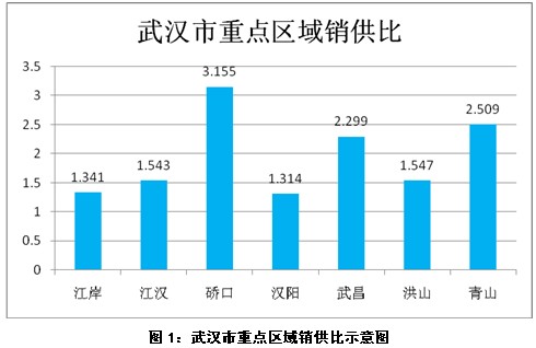 洪山区在各项指标上均比较适中,主要是该区域2009年市场供应和销量都很大,供需状况比较均衡。虽然洪山区人均收入相对于其他区域比较低,但该区域房价并不高,而且该区域客户源来自于整个武汉市乃至市外,因此成交量受到支撑。