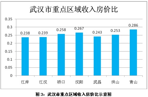 汉阳区在销供比上排名比较低,主要是2009年该区域在销售和供给量方面均比较大。受该区域土地供应量大,地价相对于房价相对较低,所以房价地价比位置比较靠前。从购买力上讲,本区域潜在消费能力较强,因此收入房价比上排名也比较高。由于汉阳区承接着武汉市中心城区居民相当部分的住房消费需求。综合分析来看,该区域的投资价值也比较高。