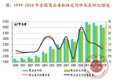 从市场数据看,部分城市房价过快上涨的态势已经开始得到有力遏制。1-6月,全国商品房销售均价涨幅较2009年下降18.7个百分点,其中5月份全国商品房销售均价今年首次出现环比下降,全国70个大中城市房屋销售价格指数同时也显示6月份价格指数环比下降了0.1%。 从各区域销售均价来看,上海、浙江和北京等区域销售均价涨幅回落速度最快,从二手房的交易情况来看,二手房的价格调整速度快于新房,前期房价暴涨区域二手房价格已经出现下降,北京的望京、通州、亦庄等区域的二手房均价降幅在2000元左右。