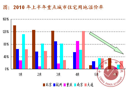 土地市场价格较09年下半年出现下滑,推动房价继续上涨动力不在