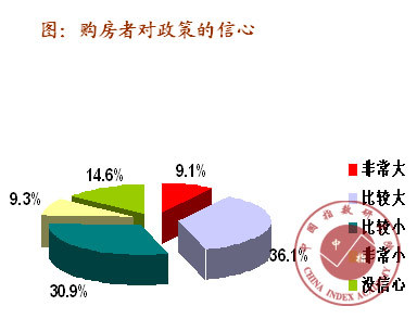 以4月15日新国十条为代表的房地产调控措施级别高、力度大、措施严,有力的促使了市场对房价地价预期的转变。调控房价的政策出台后,社会各方面对房价的未来预期已经出现了显著变化,这是一项重要的积极的调控成果。本研究组的消费者调查表明,36.1%的购房者对本轮房地产调控有比较大的信心,同时59%购房者持有房价下行预期,其中19.8%的购房者认为房价将会出现大幅下跌,房地产调控措施的效果十分明显。