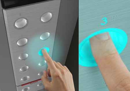 这款电梯按钮采用了感应设计,每个按钮都被做成了一个小孔,只要将手指伸进去,就会做出感应。而且,每个小孔里面还配有紫外线杀菌设备,不仅不会传播细菌,还可以起到消毒的作用。