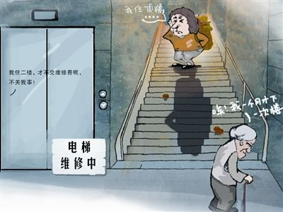住宅电梯坏了,住户因受益程度不同意见不一,维修更新面临很大障碍,高层住户叫苦不迭。由此引发人们对物业维修基金管理使用问题的思考