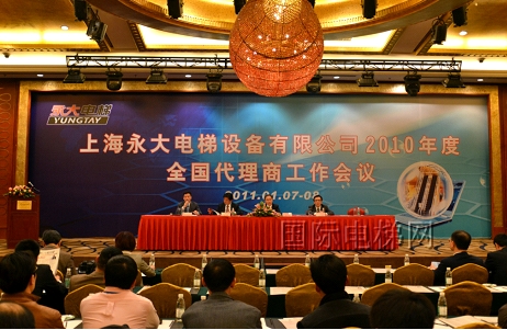 2011年1月7日早上,上海永大电梯在南海之滨——鹏城深圳的凯宾斯基酒店会议厅举行了“上海永大电梯设备有限公司2010年全国代理商工作会议”。会议由上海永大电梯上海营销部经理吴长城主持,来自全国各地的优秀代理商以及上海永大高层领导、在各地分支机构的营销、工务人员将近200人参加了本次会议。