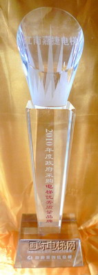 在本次会议中,作为政府采购电梯产品江南嘉捷再获佳绩,荣获2010年度政府采购电梯优秀质量品牌奖及节能贡献品牌奖,获此殊荣无疑是对江南嘉捷产品多年来进入政府采购领域产品质量(国际电梯网)和产品节能服务方面获得的肯定,同时对江南嘉捷电梯产品全方位进入政府采购领域打下坚实的基础。