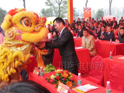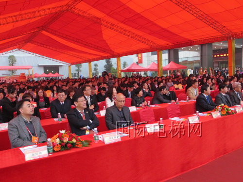 中国电梯协会理事长任天笑、国家质量监督检验检疫总局特种设备安全监察局电梯起重机械安全检查处调研员何毅、佛山市服饰厂李子甫等领导参加了落成典礼并祝词。