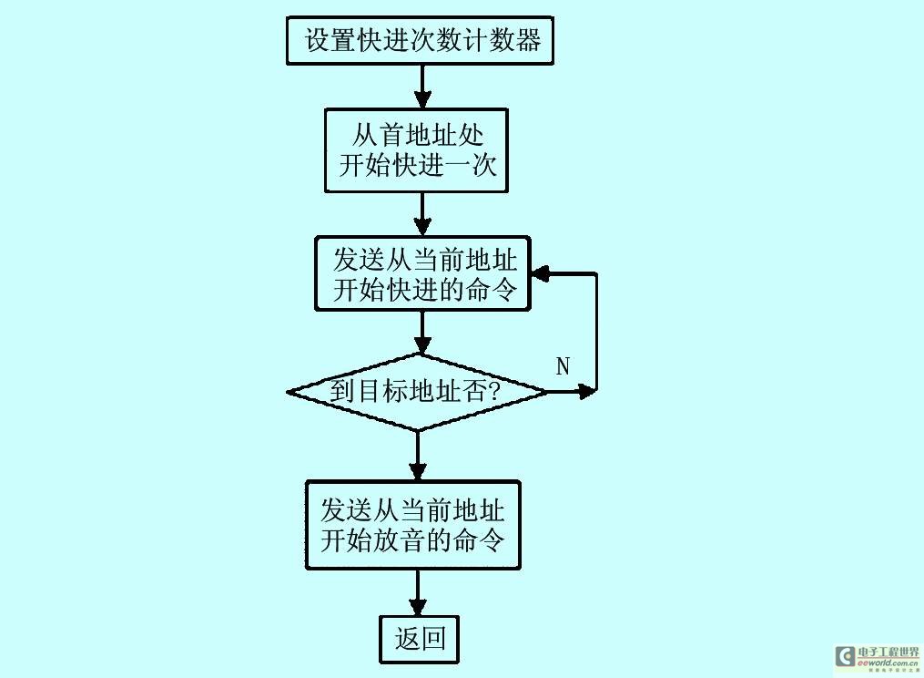 (3) 向语音芯片发送从当前语音段地址开始快进的命令;