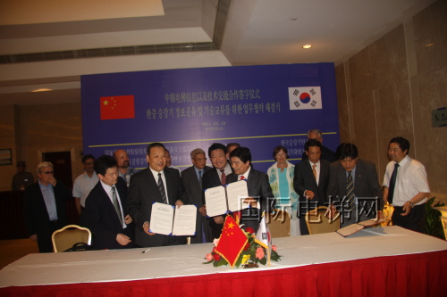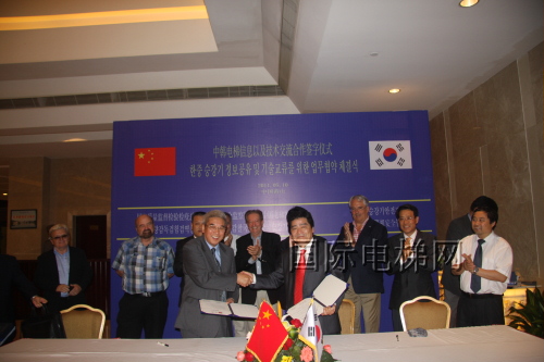 5月10日下午,国家质检总局和韩国电梯主管机构签署了中韩电梯信息以及技术交流合作协议。韩国电梯安全管理院院长金南德、国家质检总局特种设备局崔钢副局长、国家质检总局特种设备局何毅处长,中国电梯协会理事长任天笑出席了此次签字仪式。
