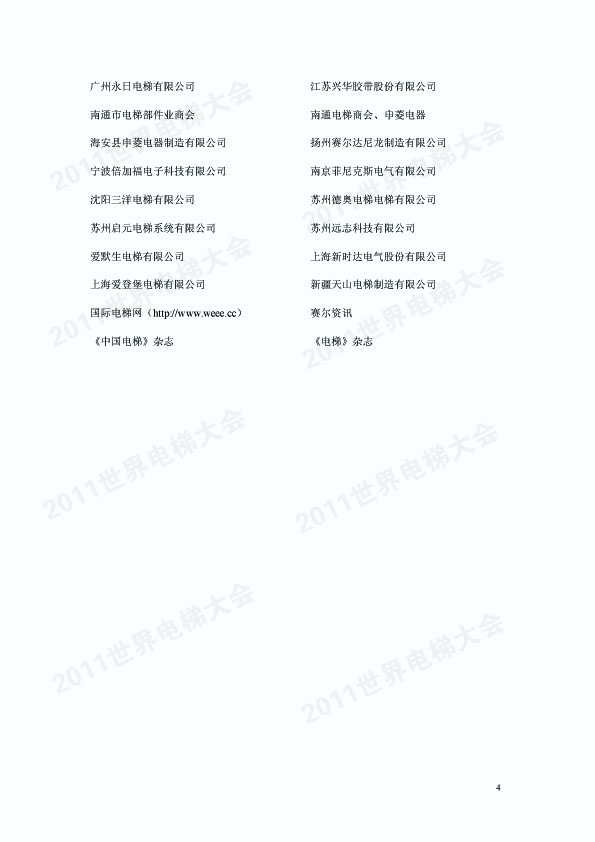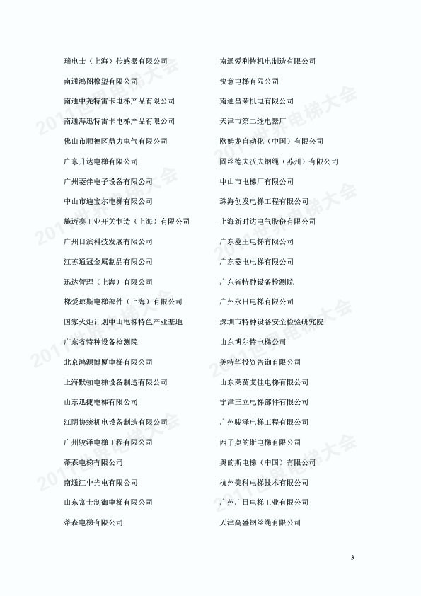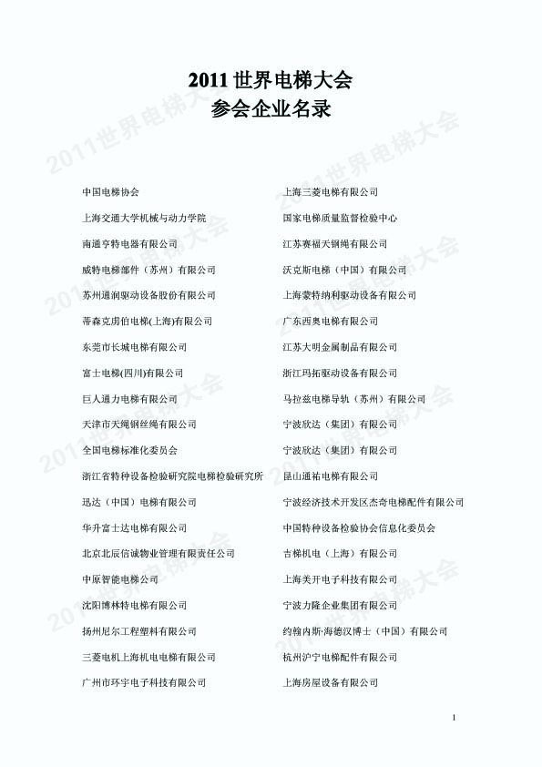 2011年世界电梯大会参会企业名录