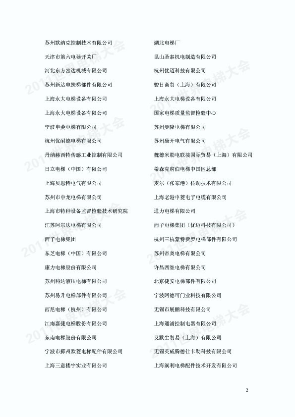 2011世界电梯大会在安徽黄山市举行,参会企业名录,排名不分先后: