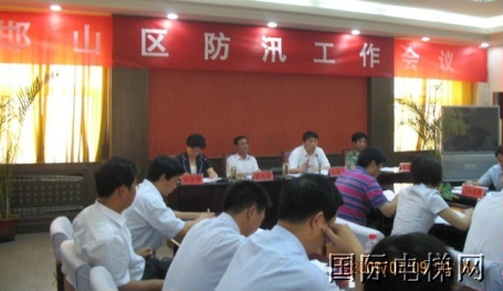 2009年6月9日,邯山区召开专题会议,对今年防汛工作进行全面部署。图为张海忠讲话(台上右二)。