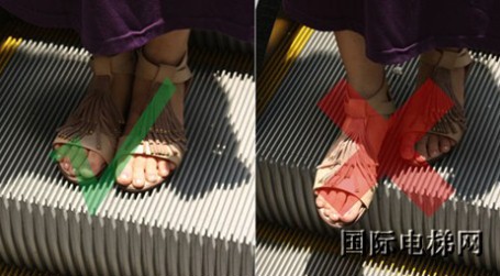 此前有关专家表示,在手扶电梯出入口、扶手带、梯板与壁板这三个位置容易出意外。因此,乘客在乘坐电梯时尽量往右排站,不要并排站立。在运行过程中,要扶好手扶电梯两旁的胶带,不要做弯腰系鞋带等平衡性差的动作。女性坐电梯时,防止衣服的流苏夹到电梯缝隙里。