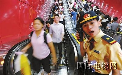 7月7日,记者在广州地铁二号线“广州火车站”站亲历电动扶梯突然停运的事故,事故发生后,地铁工作人员紧张地通过对讲机向上级汇报事故现场情况。